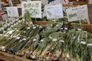 アスパラ、フキ、ミズ、山ウド、フキノトウ、タラの芽、キノメ、ワラビ、ネマガリタケ、雪下にんじん入荷しました。