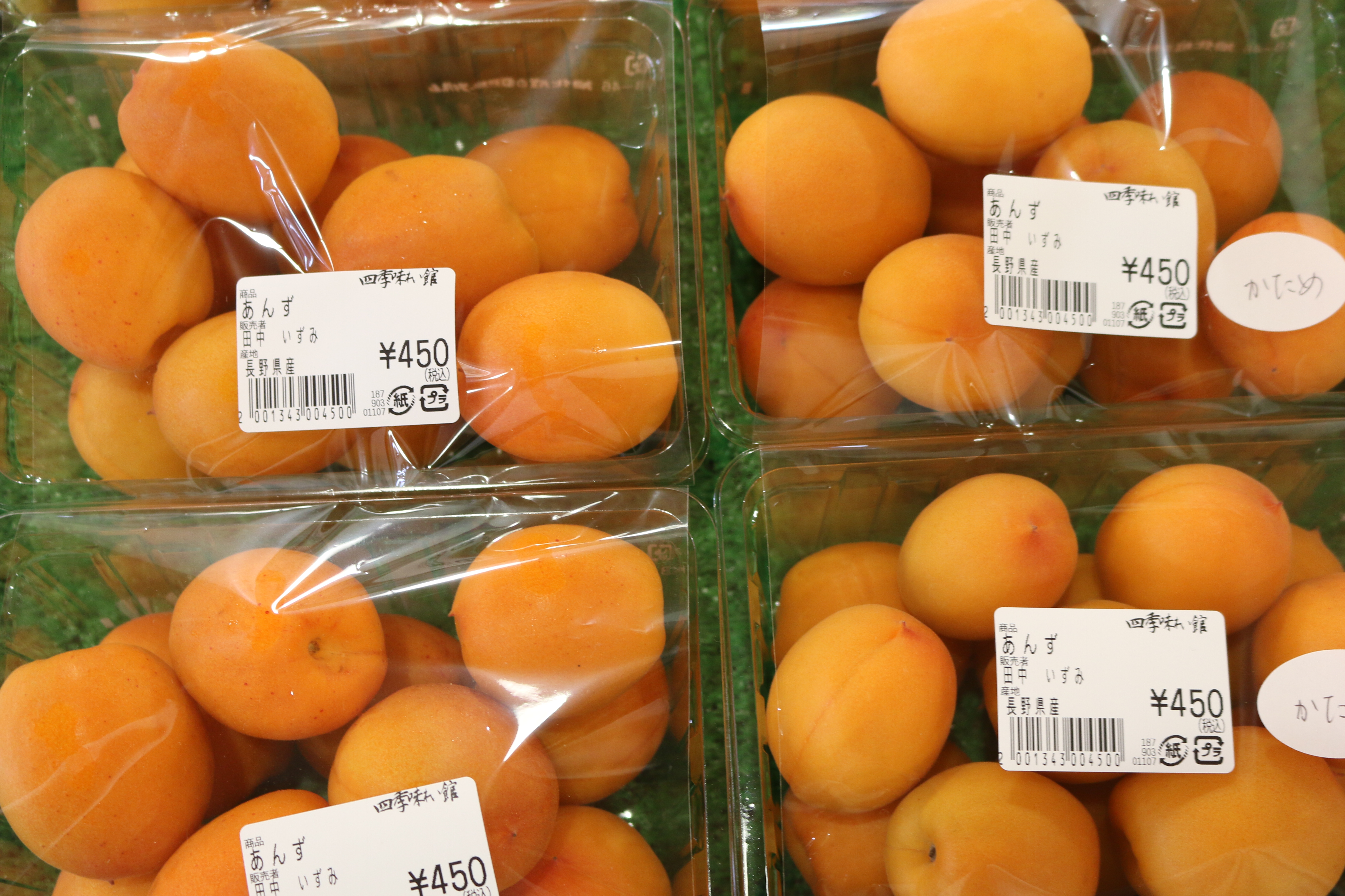 アンズ、ブルーベリー、キャベツ、モロヘイヤ、おかひじき、ニンニク、ワラビ、らっきょう、キュウリ、ズッキーニ、ウメ 他入荷しました。