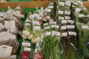 ホウレンソウ、ミズ菜、カラシ菜、ルッコラ、クレソン、せり、あさづき、フキノトウ、サツマイモ、赤大根、カブ、雪室野菜(大根、ニンジン、バレイショ、手芋、ゴボウ、ウド、アスパラ) 他取り揃えています。