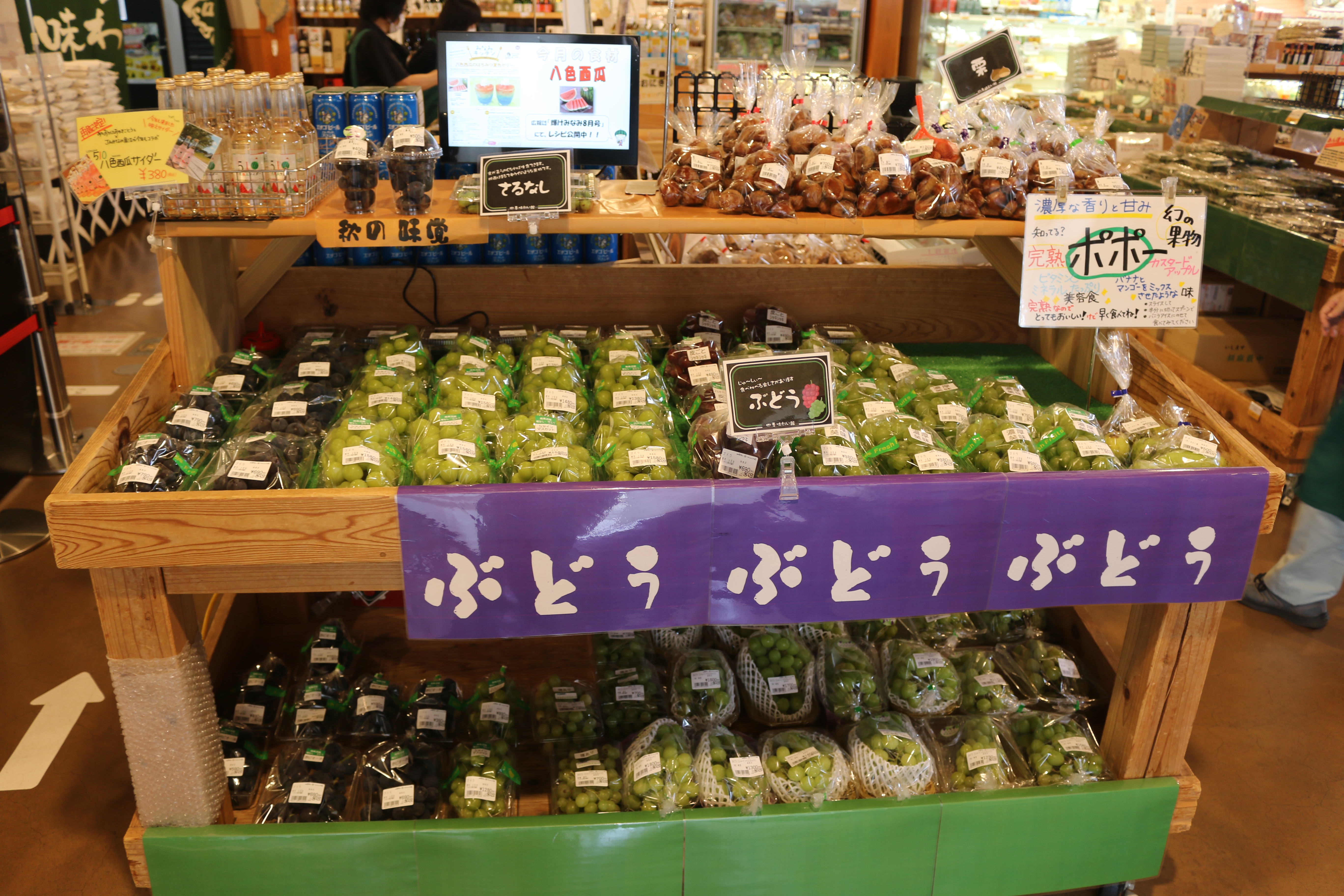 本日は各種ぶどう・さるなし・ポポー・栗・なす・マコモダケ・ミョウガ・しその実・ピーマン・かぐらなんばん・甘とうがらし・ツルムラサキ・空心菜・キャベツ・里いも・ネギ・冬瓜等入荷しています(^^)