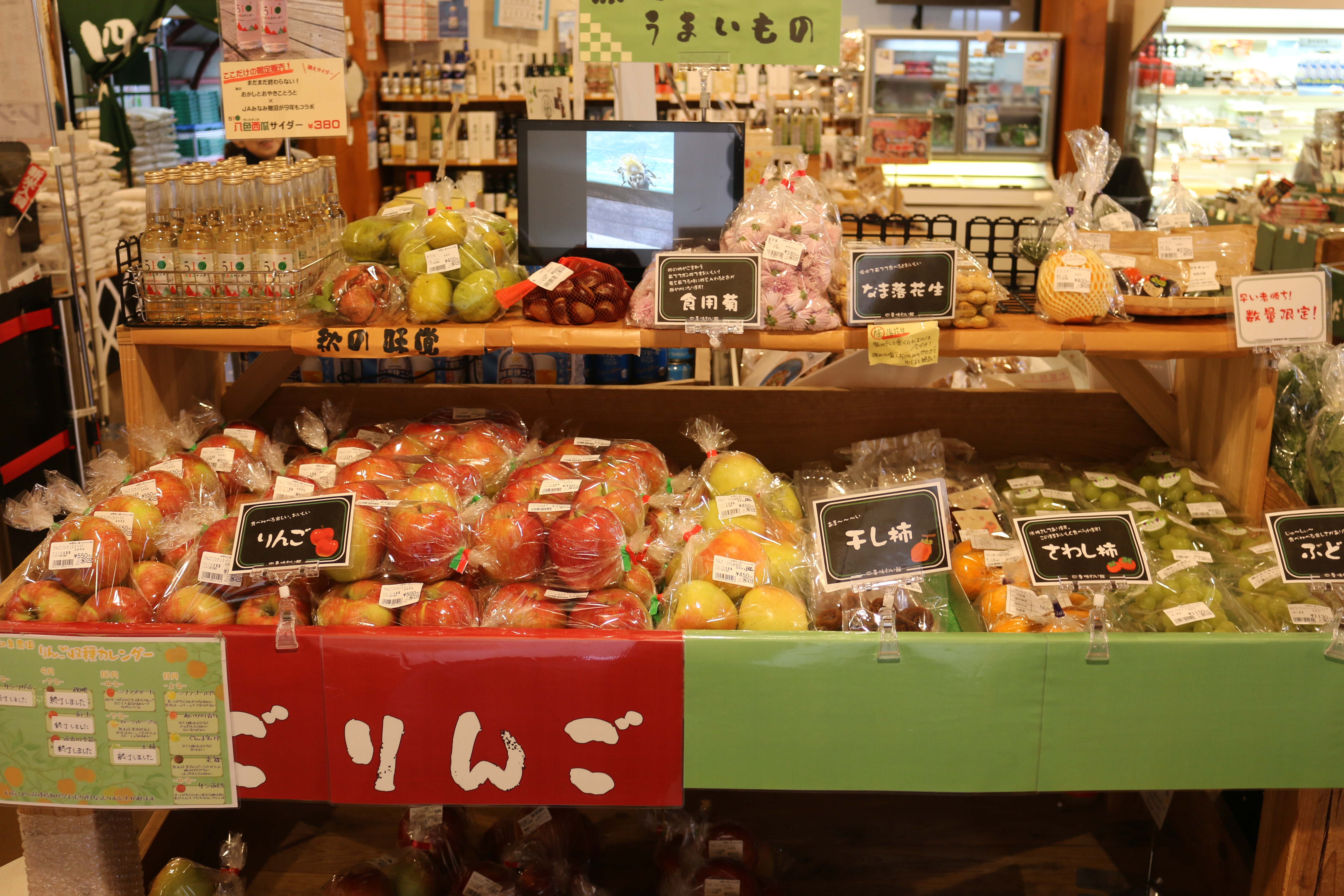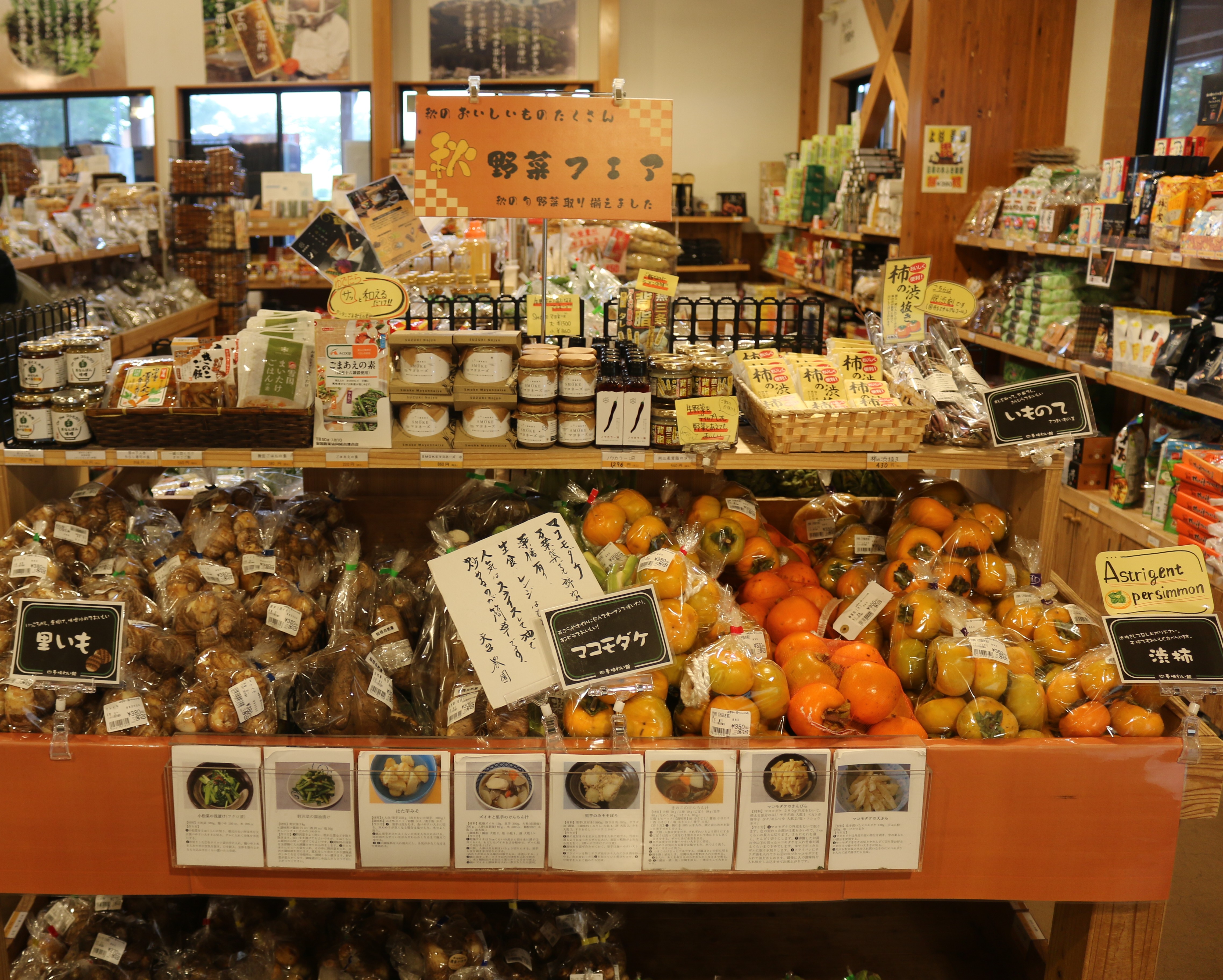 四季味わい館からのお知らせです♪本日錦鯉の品評会を行っております!色とりどりの鯉を見る事が出来ますのでこの機会に是非お越しください(^^)その他外の特設会場にて、金魚、なめこ汁、はちみつ、カトジー味噌等の販売も行っています!本日の入荷情報です。りんご(シナノスイート・名月)・あけび・かりん・干し柿・マコモダケ・河北菜・渋柿・里芋・枝豆・アスパラ菜・鷹の爪・なす・カリフラワー・かぐらなんばん・ピーマン・甘とうがらし・人参・ごぼう・ネギ・金糸瓜・さつまいも等入荷しています!秋に美味しい野菜入荷しています!是非ご利用ください!