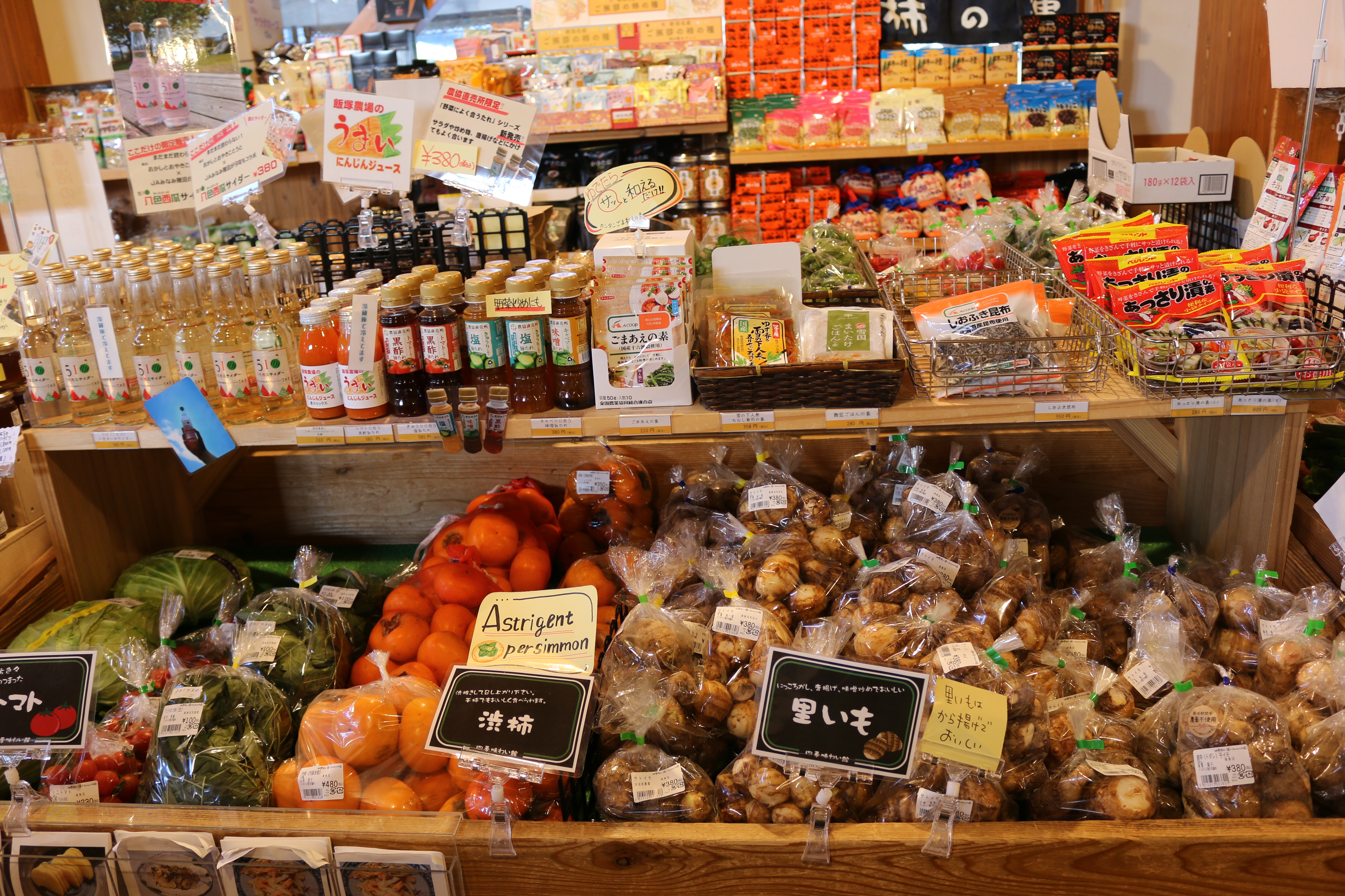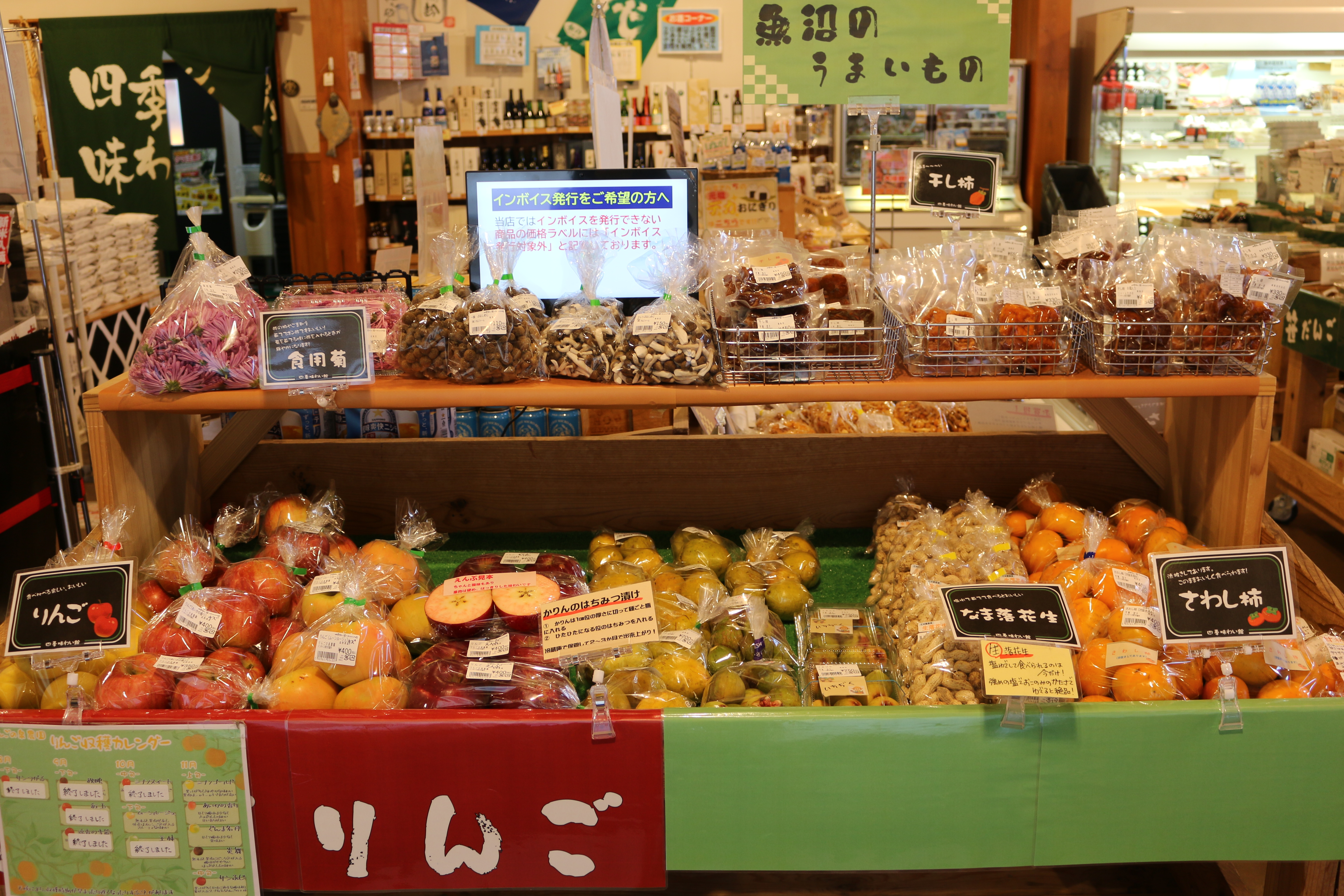 四季味わい館からのおしらせです♪本日はりんご・いちじく・食用菊・さわし柿(渋抜き済みの柿)・干し柿・大根・味美菜・春菊・かぶ・ねぎ・ちんげん菜・ぶなしめじ・なめこ・しいたけ等入荷しています!心も体もあったまる野菜ときのこはいかがでしょうか(^^)本日は快晴です!ぜひお立ち寄りください♪