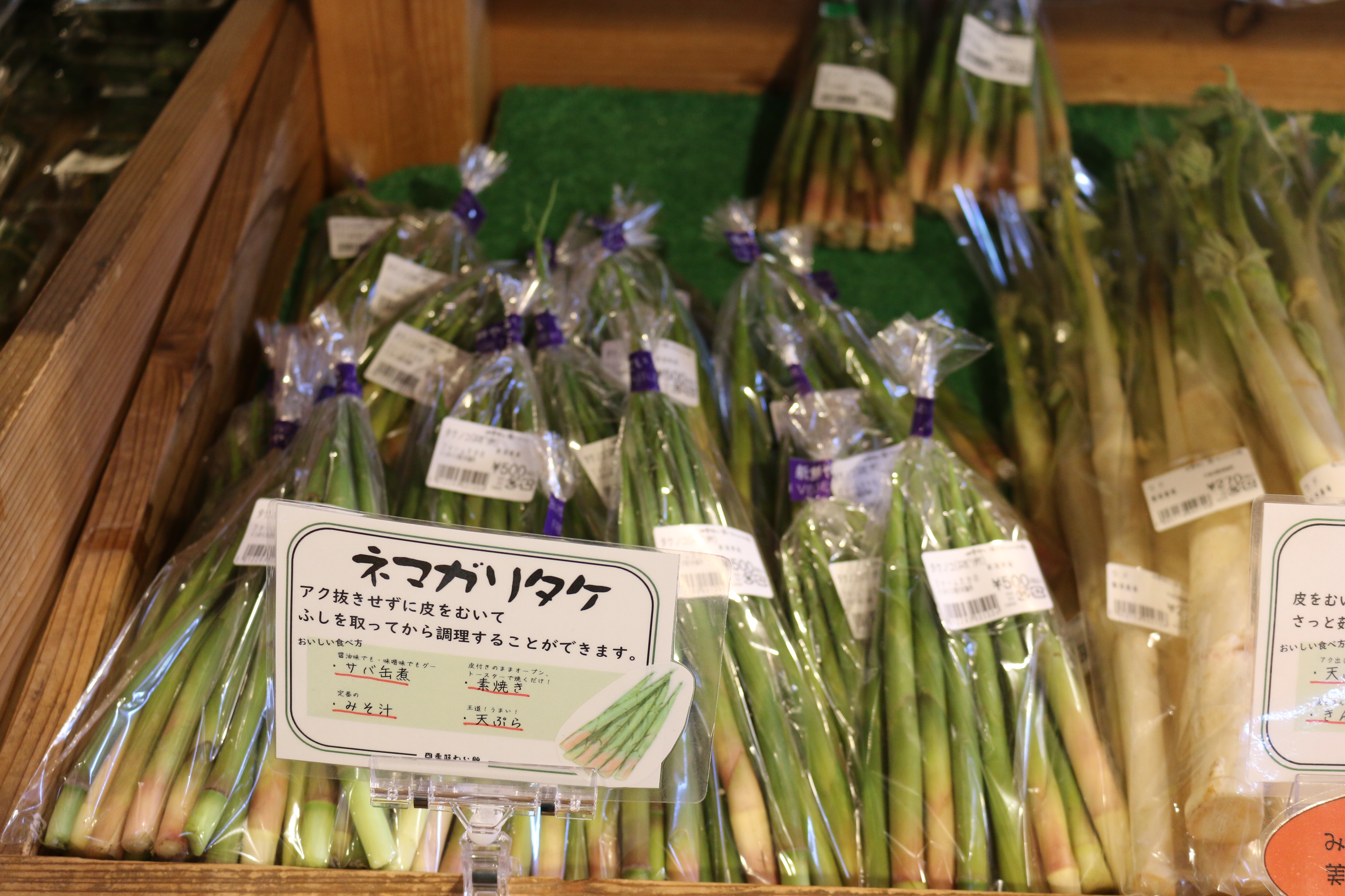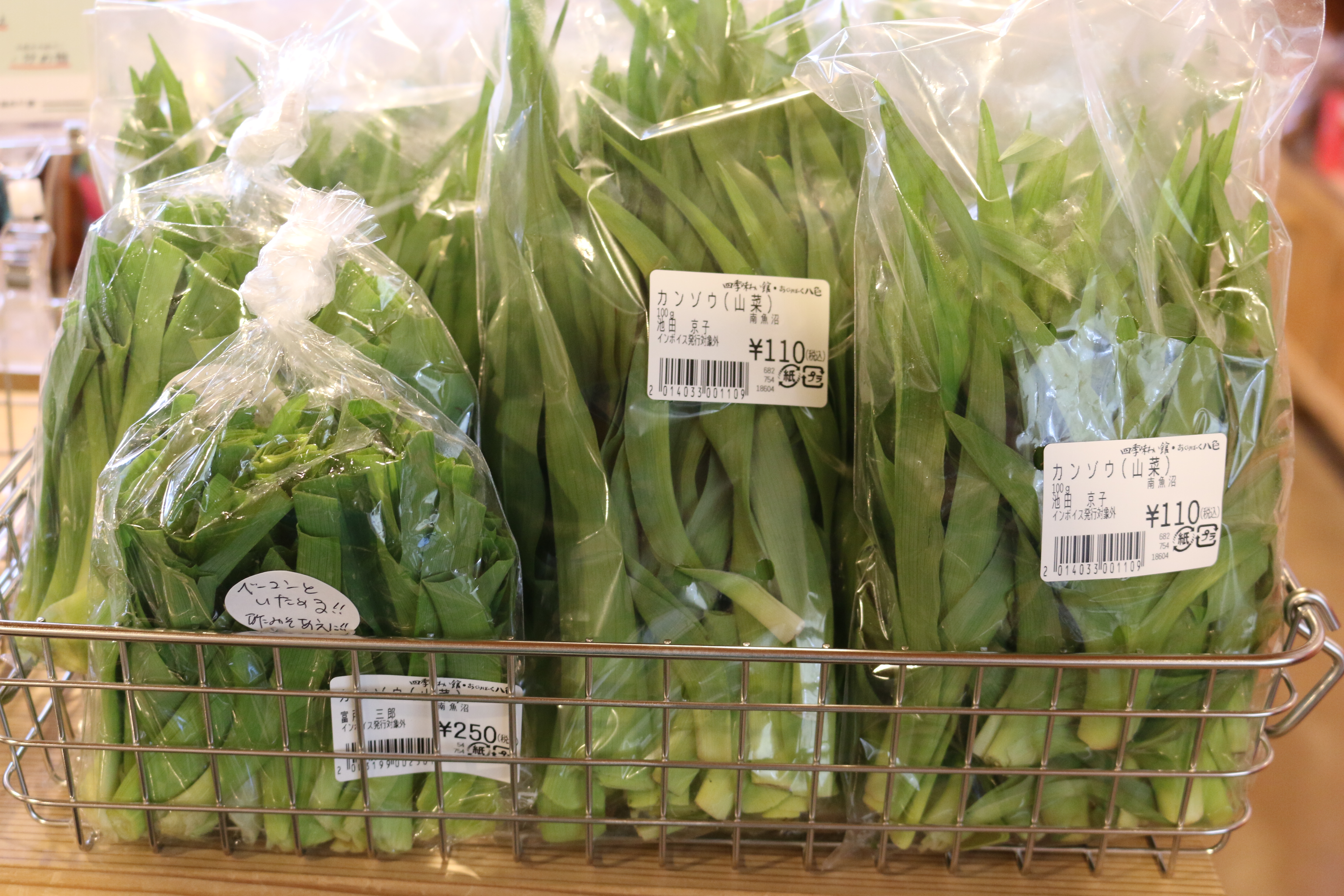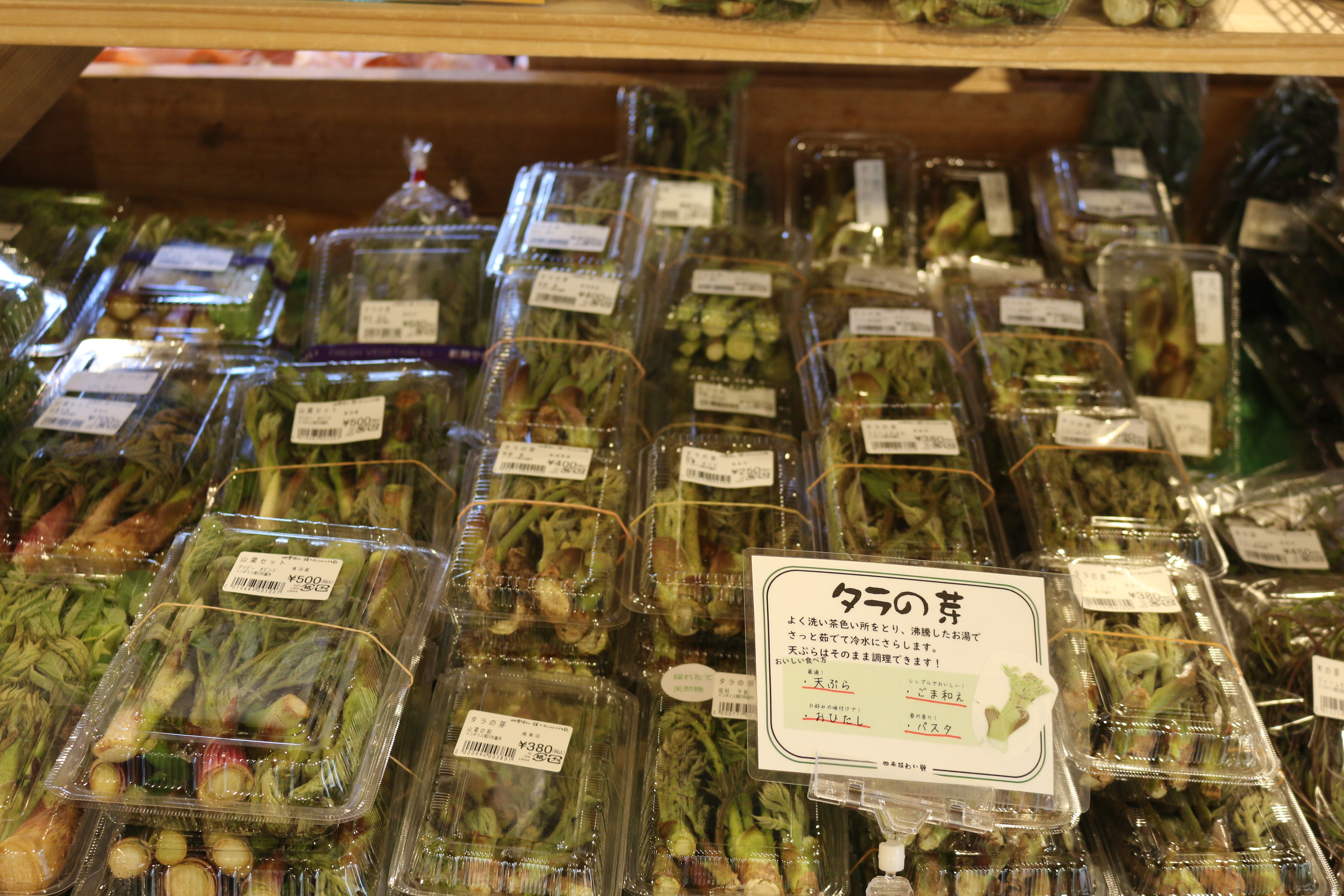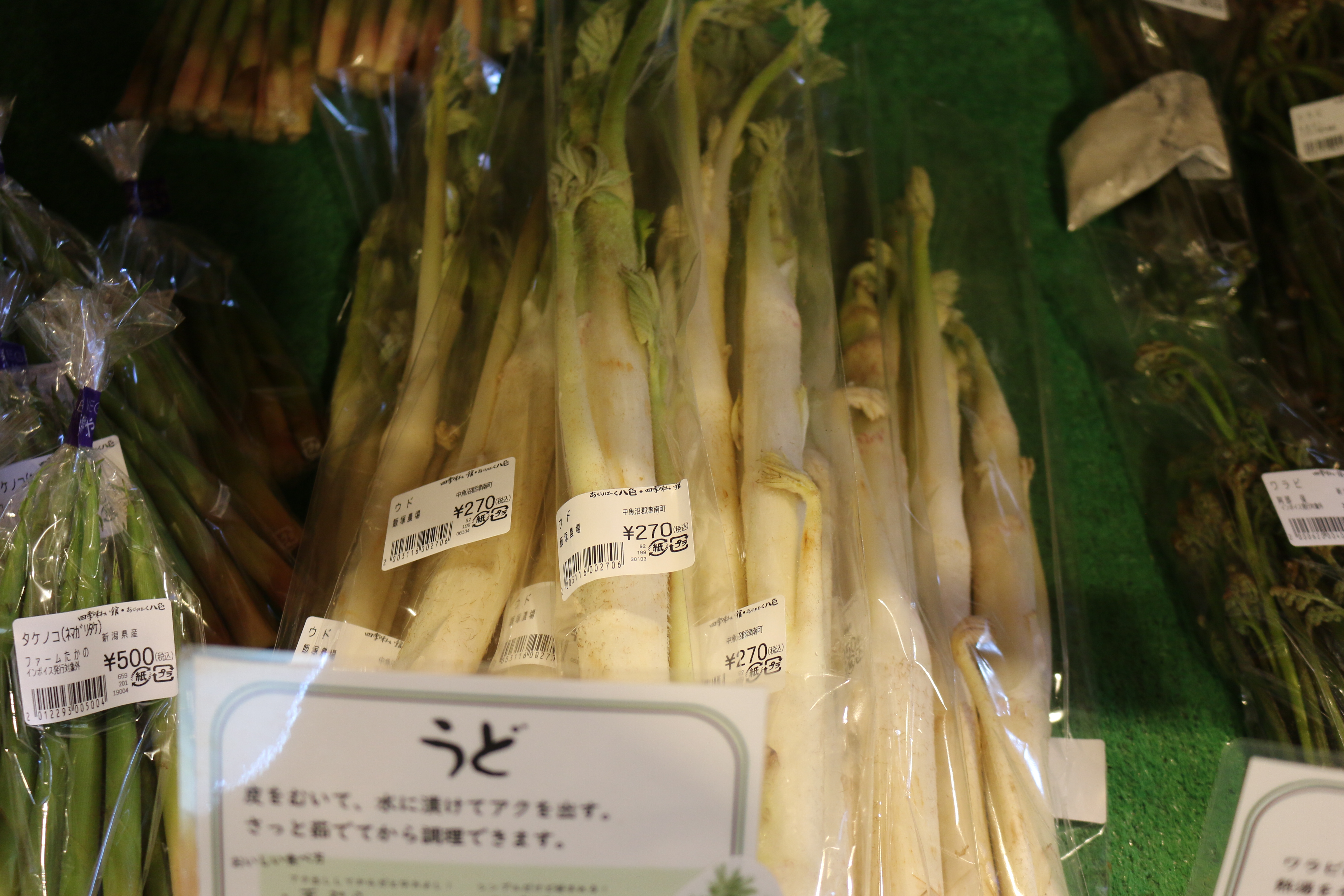 キノメ、ウド、葉ワサビ、アブラココメ、ウルイ、雪下にんじん、雪室ごぼう、青菜、アサツキ、カンゾウ、ネマガリタケ、サツマイモ(紅はるか、なると金時)、なめこ、しいたけ、ぶなしめじ、平飼い卵他、入荷しています♪