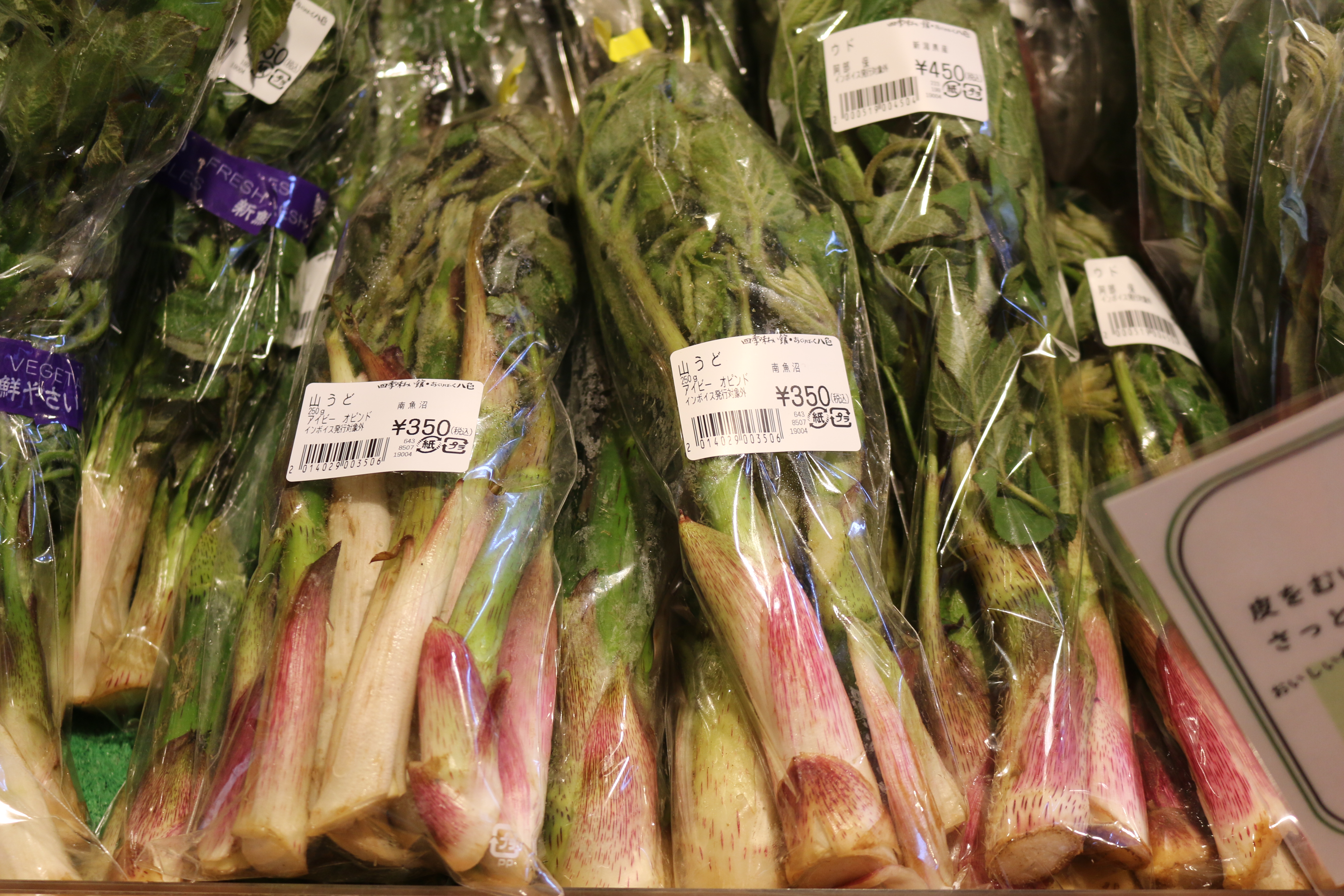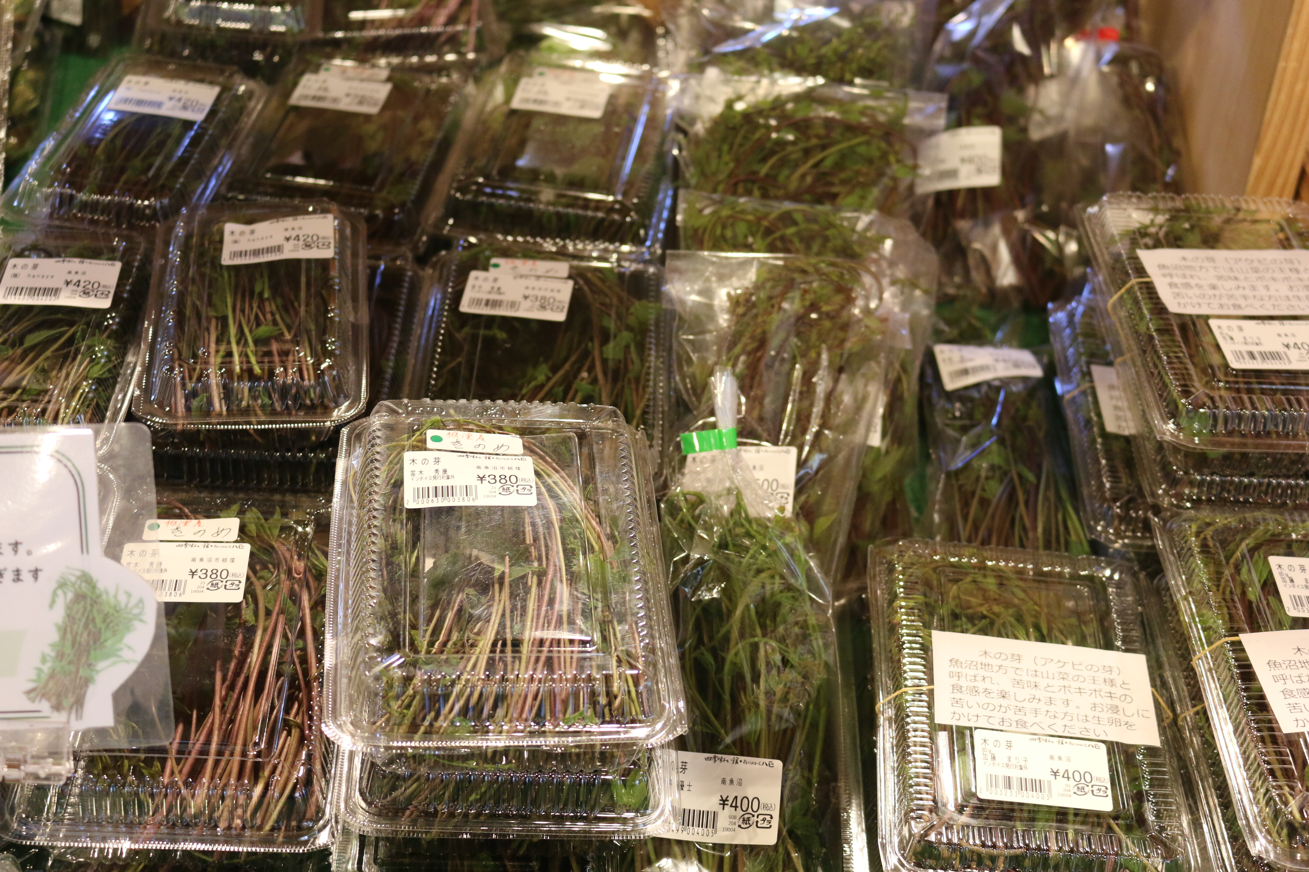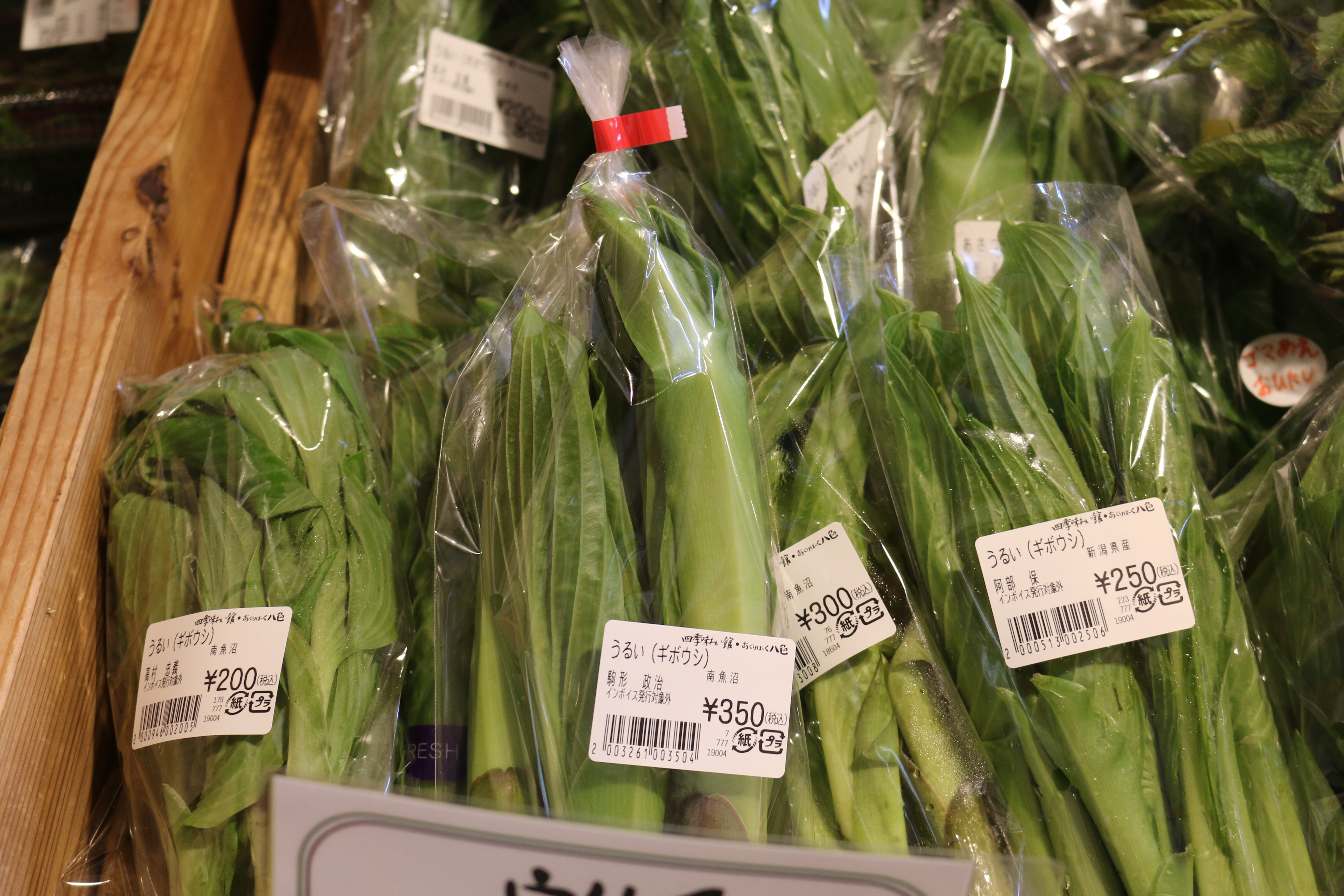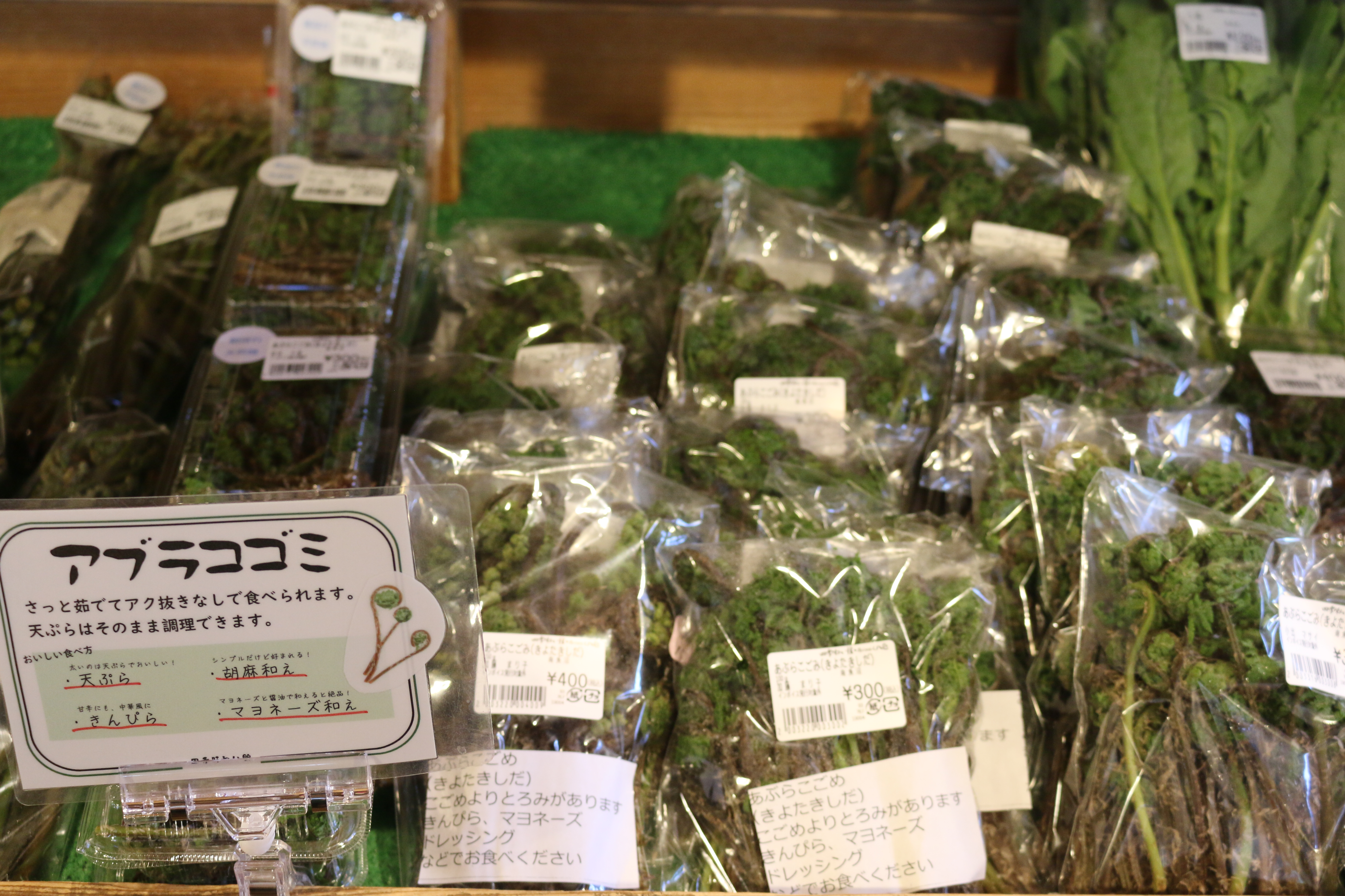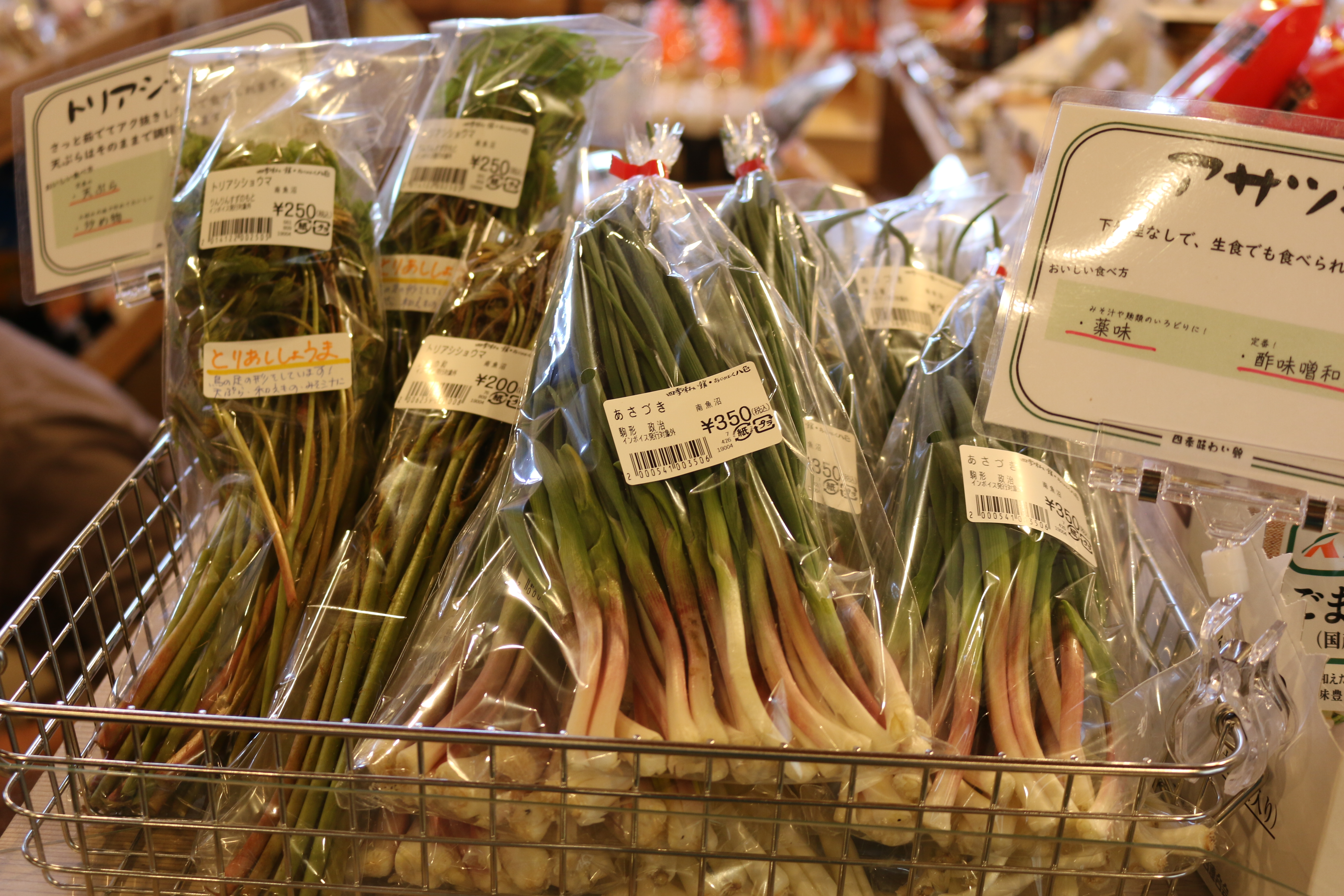 キノメ、ウド、葉ワサビ、アブラココメ、ウルイ、雪下にんじん、雪室ごぼう、青菜、アサツキ、カンゾウ、ネマガリタケ、サツマイモ(紅はるか、なると金時)、なめこ、しいたけ、ぶなしめじ、平飼い卵他、入荷しています♪