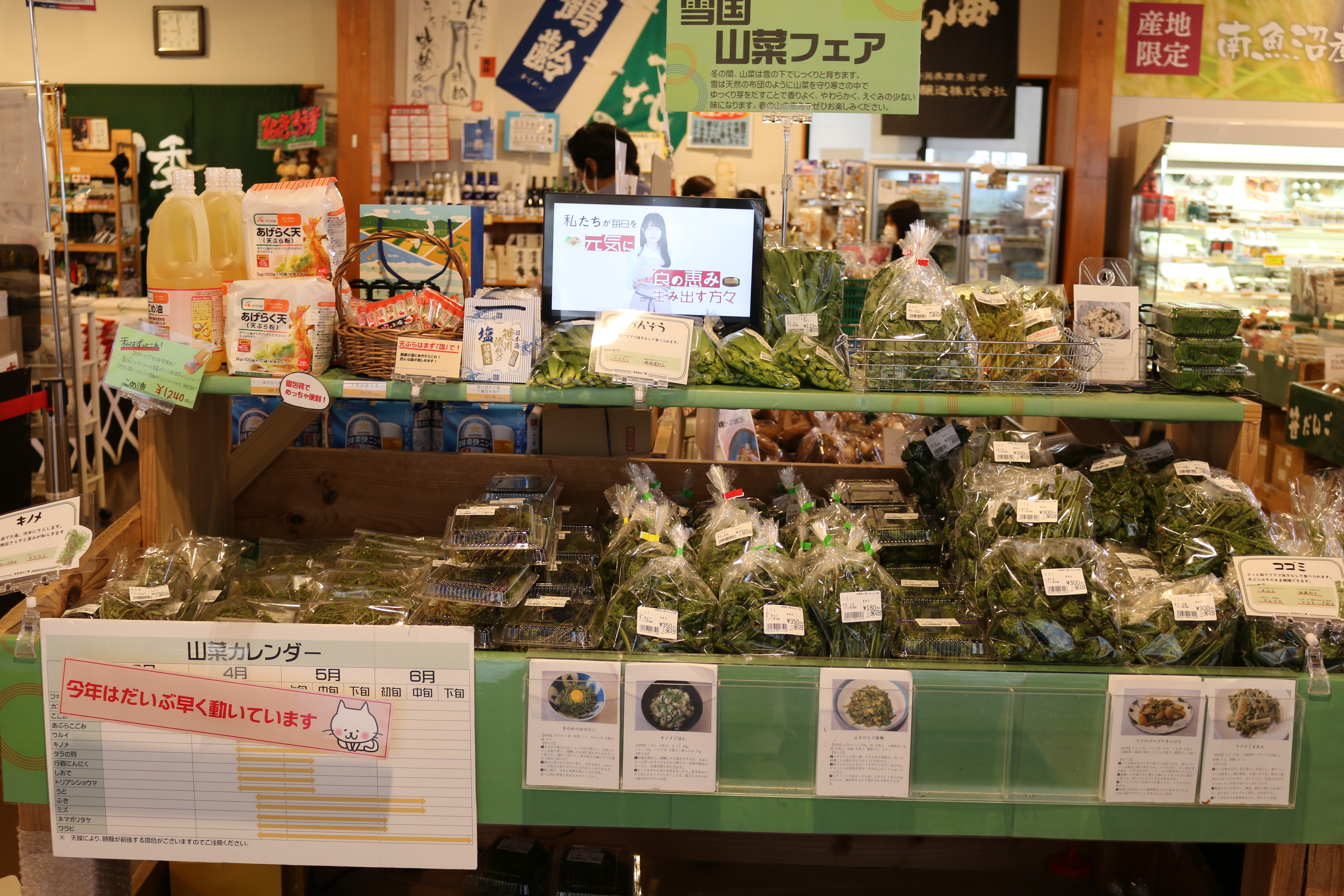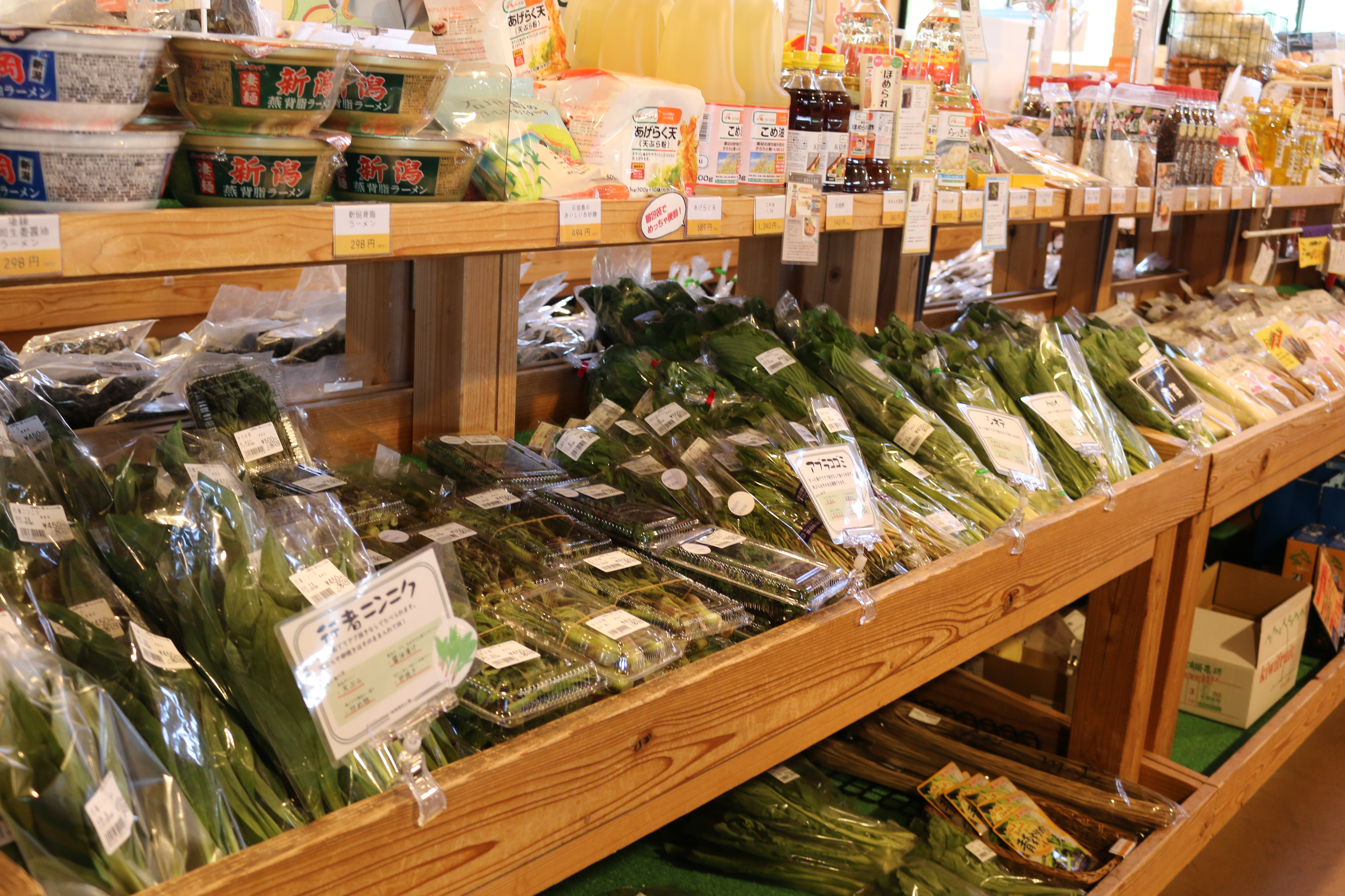 キノメ、コゴメ、タラの芽、ウド、アブラコゴメ、行者ニンニク、青菜、シオデ、アサツキ、トリアシショウマ、雪下にんじん、雪室ごぼう、ナメコ、ブナシメジ、シイタケ他、入荷しています(^O^)/