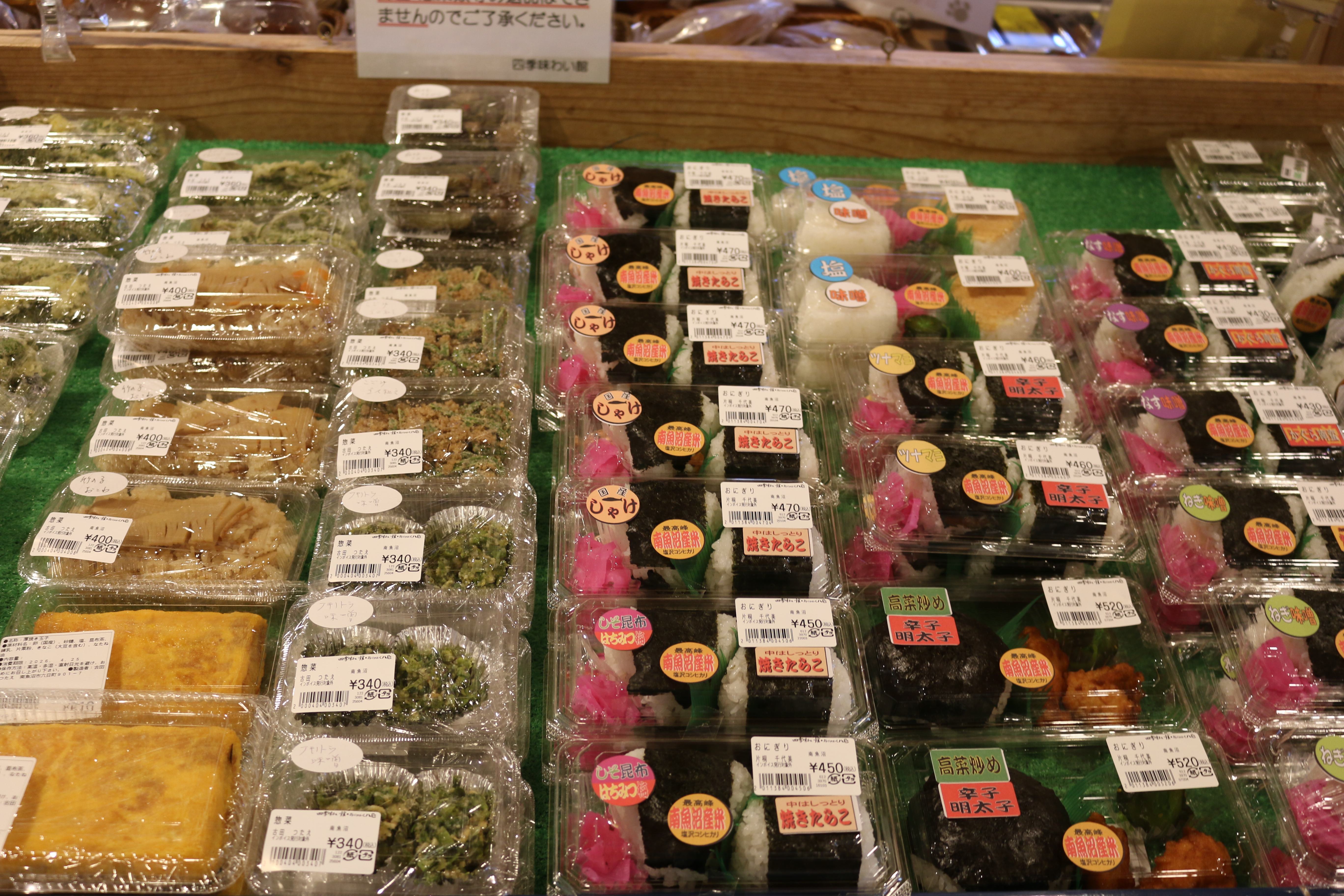 お弁当にぴったりのデカおにぎり、お惣菜、移動販売車ではこだわりバンズのホットドッグと色々あって目移りしそうです♪